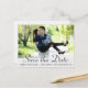 Elegant custom photo "Save the Date" postcard with white wood grain overlay.