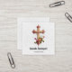 Elegant Wooden Cross with Pink Flowers Square Business Card