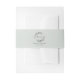 Wedding invitation belly band featuring elegant wreath monogram with couple's initials, names, and wedding date on soft sage green colour.