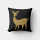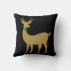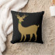 Elegant Holiday Throw Pillow, Christmas Reindeer with Holly, Gold Deer on Black Pillow