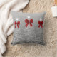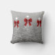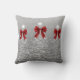 Elegant Xmas Sparkling Trees Silver Faux Red Bow Cushion