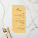 Elegant yellow wedding or dinner reception Menu card. Contemporary, simple and elegant design with beautiful modern hand written calligraphy. Front and back background colour in yellow tone. Ability to change both front and / or back background colour by selecting "customise further". Design available in a variety of colour choices. Part of our "Elegant Yellow Event Signs and Products" collection with a variety of coordinating products available including seating plan cards and table numbers and event signs.