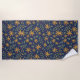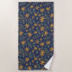 Elegant Yellow Floral Pattern on Blue Beach Towel