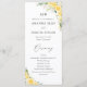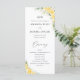 This Elegant Yellow Floral Wedding Program template adds a bright and sophisticated touch to your ceremony, beautifully designed with soft yellow florals and delicate greenery for a fresh and romantic aesthetic. The warm yellow tones paired with subtle botanical accents create a welcoming and elegant look, guiding your guests through each moment of your special day. Featuring a clean and well-organised layout, this fully editable template allows you to easily customise the order of events, names, and details to match your wedding theme. Ideal for print use, it enhances your ceremony with both style and clarity.