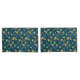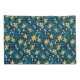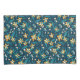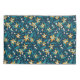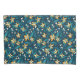 Pattern of yellow flowers with white centres and dark green leaves on a deep blue background. The design is vibrant and symmetrical.