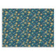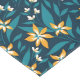 Pattern of yellow flowers with white centres and dark green leaves on a deep blue background. The design is vibrant and symmetrical.