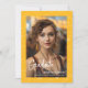 Elegant yellow graduation photo announcement with a mathematics background. Illustrated and designed by Patricia Alvarez.