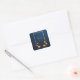 Elegant Yellow Rose Navy Blue Silver Frame Square Sticker