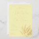 This elegant wedding invitation features a warm, pale yellow background with subtle gold accents, creating an inviting and classic atmosphere. The design includes smooth digital illustrations of wheat stalks on the side, adding a touch of natural elegance. The layout is centred and balanced, with a mix of flowing script and simple serif fonts that highlight the names and event details while maintaining readability. The overall mood is one of warmth and celebration, perfect for a joyous occasion like a wedding.