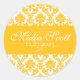 Elegant Yellow White Damask Wedding Favour Classic Round Sticker