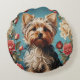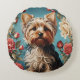 Elegant Yorkshire Terrier Portrait Rose Garden Round Cushion