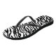 Flip flops featuring an elegant black and white zebra pattern design. Beautiful for an animal lover or to match a black and white outfit.
