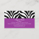 © 2010 Socialite Designs. Posh animal print business card ready for you to personalise. White background colour can be changed as well as the font. Matching letterhead as well as other zebra print designs and products are available.