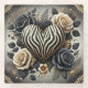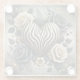 Elegant Zebra Print Heart & Roses Glass Coaster
