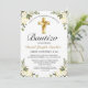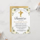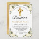 Celebre el bautizo de su hijo con familiares y amigos invitándolos con esta elegante invitación de bautizo de oro y Amarillo. Este diseño presenta una elegante cruz con un marco floral sobre un fondo blanco hermoso. Personaliza el texto y la fuente a tu gusto.
