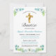 Elegante Flores y Cruz Para Niño Bautizo Invitation