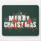 Elegante White Typography Merry Christmas Deep Evergreen, This beautiful photo Christmas Gift Tags features hand-drawn floral elements in various shades of coral, red-white, mint, teal, lime, and green. Included are pine, flowers, sprigs, leaves, berries, and buds, along with modern typography in White, reading, "Merry Christmas." The background colour is a deep evergreen, and the back of the card contains matching multicolored stripes