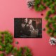 Send New Year's greetings with these chic photo cards featuring your family name overlaid in gold foil handwritten script lettering. Personalise with your custom message beneath. Cards reverse a pattern of tiny white stars.