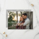 An elegant wedding save the date postcard designed to accommodate your favourite horizontal or landscape orientated full-bleed engagement photo. Your names appear as a white text overlay in modern hand lettered script. Personalise with your wedding date and wedding location beneath. Cards reverse to a subtle botanical pattern with space to include your wedding website url or any additional information you choose. You can change the back colour by clicking Customise/Personalise and then selecting new background colour either from the palette or by entering a colour hex code.