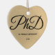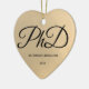 A heart-shaped PhD graduation ornament with a gold tone (non-foil) and black colour scheme. It shows the degree, name, and year. Simply customise this ornament, add it to your cart, and have a keepsake of this major achievement.