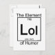 Science has isolated a new chemical in the periodic table - the element of humour, abbreviated as LOL. You encounter it daily when texting and gaming - it's what makes you laugh out loud! Slang chemistry for the masses - a perfect funny gift for anyone!