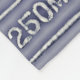 Graphic photo, of the words, "250mm", displayed in white, against a purple, white, dark-blue, and black, background-is an element of measure, in the Metric System.