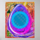 Two symbols for the element of Ether and Air plus bright colourful patterns. Blue circle and purple egg.