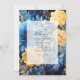 Elemental blue floral wedding invitation with accents of gold. Ideal for a garden wedding.