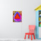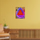 Two symbols for the element of Ether and Fire plus bright colourful patterns. Red Triangle and purple egg.
