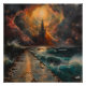 This surreal landscape artwork depicts a glowing elemental path leading toward a mysterious tower beneath a dramatic, cosmic sky. Reflections on water, swirling clouds, and radiant light create a cinematic atmosphere filled with depth, symbolism, and wonder. Ideal wall art for fans of surreal environments, fantasy worlds, and atmospheric decor. Perfect for modern interiors, creative studios, and collectors seeking immersive, story-driven artwork.