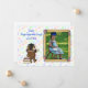 A cute photo card to announce your little one's graduation. Design features pencil frame and teddy bear with diploma on pastel dotted background. Just insert your own image and text to personalise. Cards come complete with envelopes and your choice of paper.