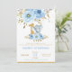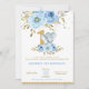 Elephant 1st Birthday Blue Floral Boy Invitation