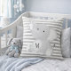 A lovely striped design, this pillow features a grey and white striped pillow with a grey elephant on top. The monogram design is on the elephants stomach. Perfect for a baby nursery. Purchase yours today!