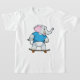 100% cotton so perfect for summer, It is a nicely designed t-shirt, the fabric is soft and the seams finished well, the body of the t shirt has no side seams. I bought a medium size for my two grandsons, aged 9 and 8 it will be slightly big on them but I would rather that than too small