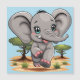 Elephant Cute Baby Happy Cartoon Character runing and jumping on African Savannah Landscape. Original Vector Illustration Copyright BluedarkArt TheChameleonArt.