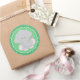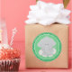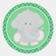 This design features a green background with a repeating pattern of jungle leaves. A cute baby clipart grey elephant sits in the centre of the sticker.
