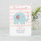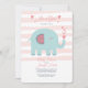 A sweet baby girl shower invitation with a pink and white stripe background and a teal elephant blowing hearts. (<a href="https://www.vecteezy.com/free-vector/february">February Vectors by Vecteezy</a>). <br/><br/>The card is easy to customise with your wording, font, font colour and choice of paper types.<br/><br/>Not exactly what you're looking for? All our products can be custom designed to meet your needs at no extra charge.<br/><br/>Simply contact us at heartfelthelper@gmail.com<br/><br/>Coordinating products available:
