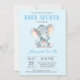 Elephant Baby Shower Invitation Blue and Grey Card. Boy or Girl Baby Shower. For further customisation, please click the "Customise it" button and use our design tool to modify this template.