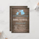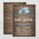 Elephant Baby Shower Invitation Blue Card with Rustic Wood Background. Vintage Retro. Boy Baby Shower Invite. For further customisation, please click the "Customise it" button and use our design tool to modify this template.