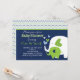 Adorable baby shower invitation with a mama elephant and her calf in navy blue and green.