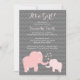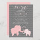 Elephant Baby Shower Invitation Pink and Grey. Cute mum and baby elephant blowing heart shapes bubbles on a dark grey chevron background. A sweet - It's a Girl - baby shower invite.