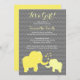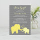 Elephant Baby Shower Invitation Yellow and Grey. Cute mum and baby elephant blowing heart shapes bubbles on a dark grey chevron background. A sweet - It's a Girl - baby shower invite.