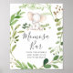 Give your guests a lovely direction with our elephant mimosa bar sign, featuring watercolor greenery eucalyptus garland and elegant handwritten style font.