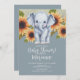 Elephant Baby Shower Sunflowers Glitter Dusty Blue Invitation
