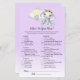 Play What's On Your Phone at your baby shower with these adorable baby girl elephant with yellow sunflower headband, cute elephant in yellow hot air balloon with white cloud, and purple white gradient background.
