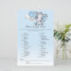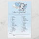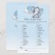 Play What's In Your Purse at your baby shower with these adorable baby boy elephants with one in a blue hot air balloon with white cloud, and blue and white gradient background.