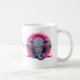 A majestic elephant rocking headphones with a vibrant pink splash background, ready to stomp to the beat.
