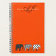 Modern, black and white elephants with cool patterns in combination with trendy, bright orange lava red background.