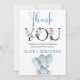 Blue alphabet and flowers, baby elephant baby shower thank you card.