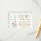 Whimsical "bring a book" invitation insert card featuring an adorable baby elephant boy with heart-shaped balloons in blue and gold
